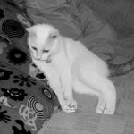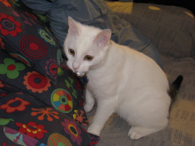 No, naj nadaljujem. Aha, renčala sem kot prava divja mačka, a ni nič pomagalo. Mačkon Snoopy me je ujel, dvakrat oklofutal s svojo debelo šapo, potem me je celo nekako spravil podse, da sem uspela iz grla izdaviti le še en precej cvileč mijavk. In rezultat: srebrno igračko sem izpustila iz objema svojih mlečnih zob. Pih!