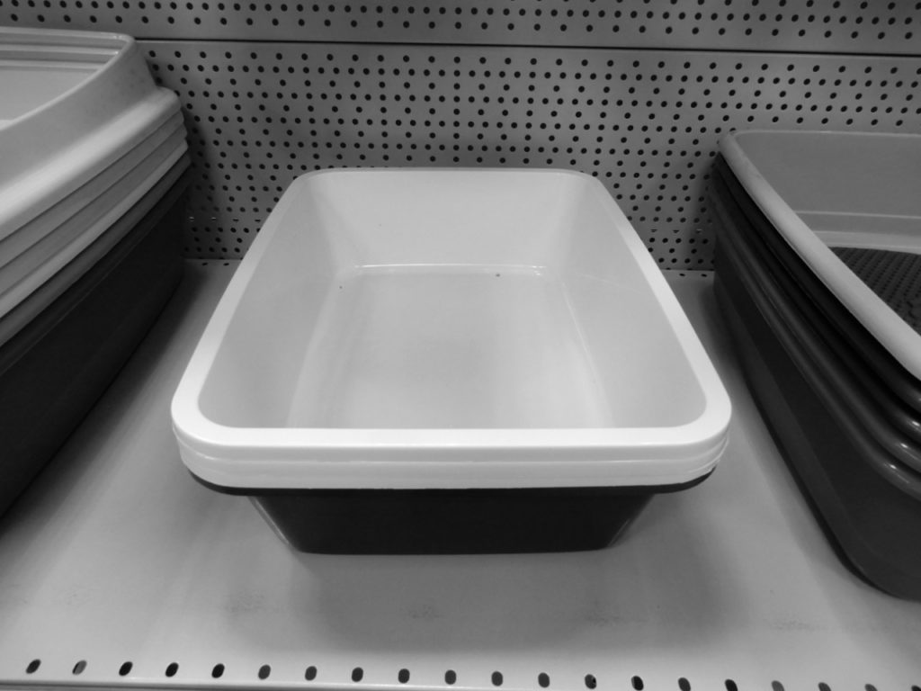 Prvi vece za mačke je v hiši bil tisti osnovni model – torej zgolj plastična škatla. Zelena in odprta. Izkazala se je bolj slabo in kot ustrezno za primere učenja mačjega mladiča s pomočjo asistence žerjava, oziroma vaših zgornjih okončin.